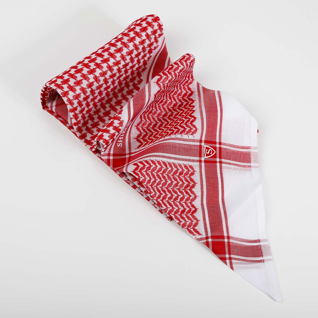 شماغ شيلد احمر صنع من اجود انواع الخيوط متطابق الاطراف يتميز بثبات اللون ذو جودة عالية خامة قطنية 100%